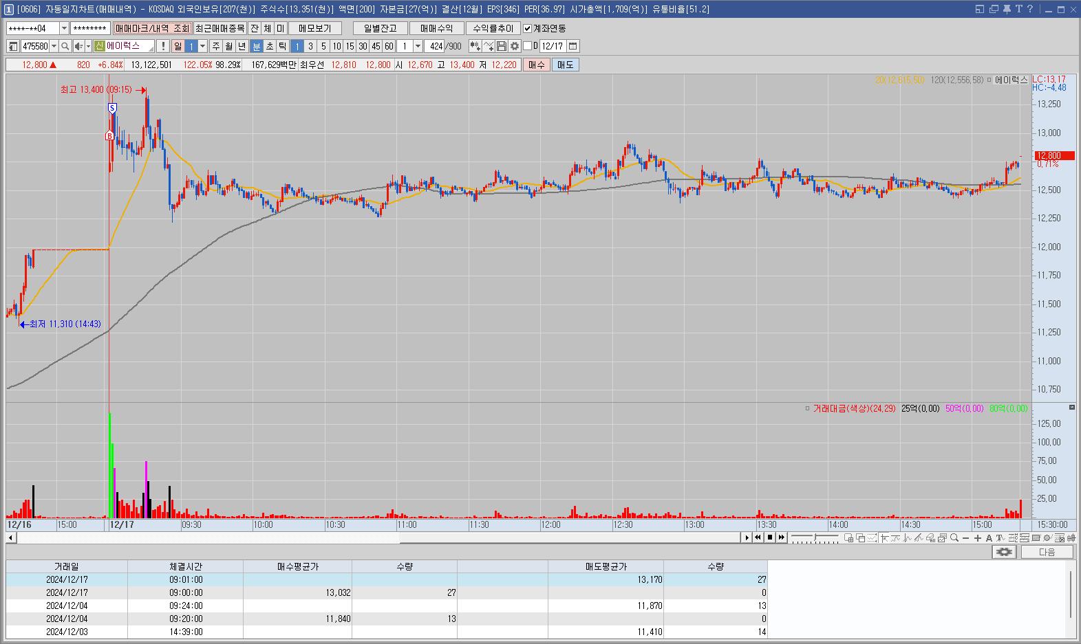장 초반에 주도주라고 판단된 종목은 크게 추세가 꺾이지 않으면 계속 지켜봐야 한다