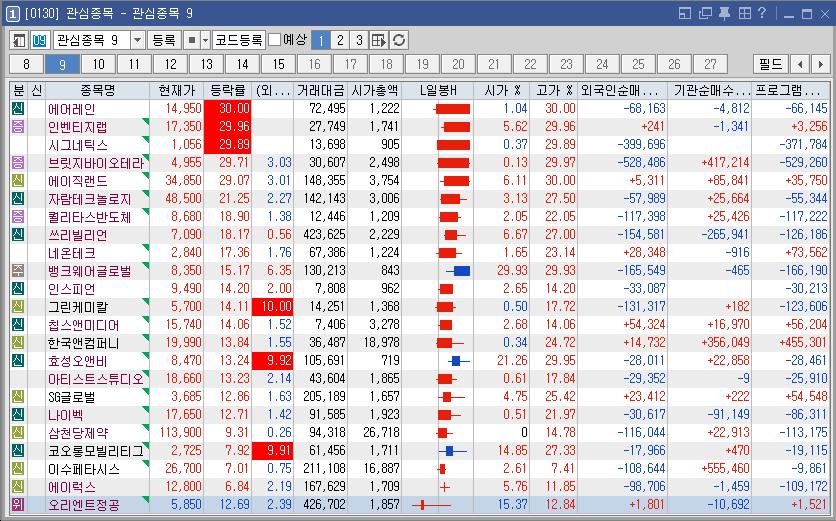 효성오앤비 | 9.92 | 2,842 | 우원식 정치인 신뢰도 1위 소식 지속 우원식 테마 강세 |