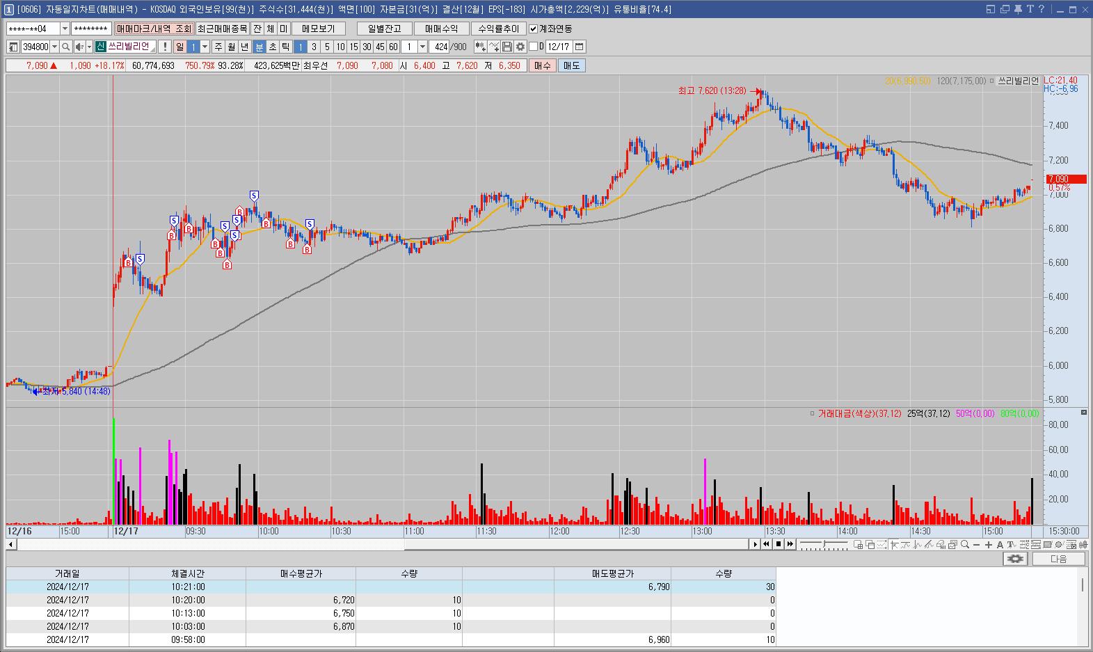 별다른 이슈가 없는 것 같은데 거래대금 쏠리며 변동을 주는 모습에 매매