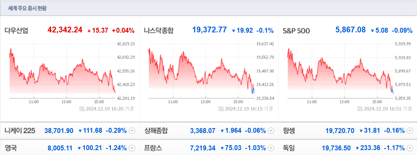 뉴욕증시는 Fed 매파적 금리인하 여파 지속 등에 혼조