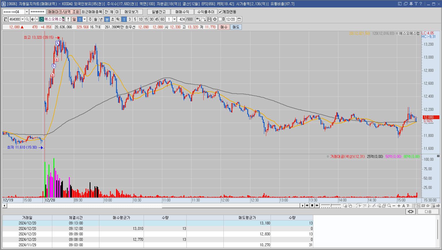 최근  주목받고 상승했다가 조정이 왔는데 오늘 신고가 트라이 하려는 모습에 스캘핑