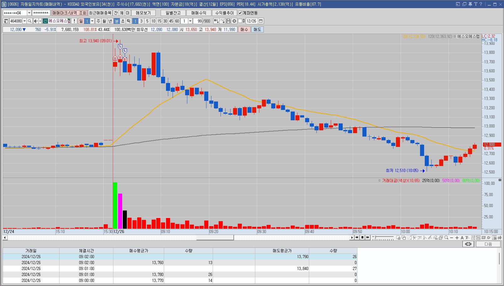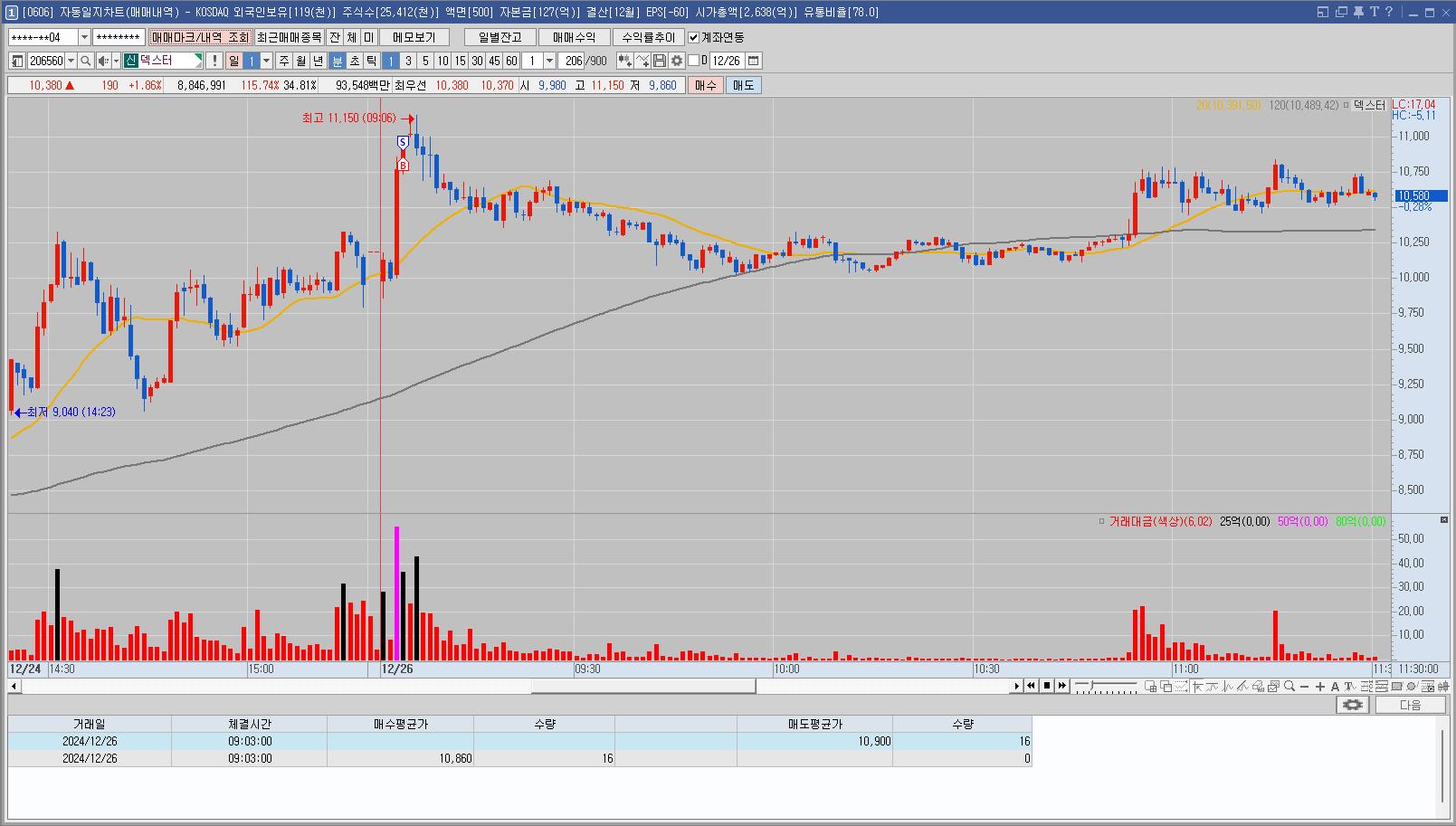 오늘 오징어게임2편 나오는 날이라 재료소멸 우려가 있어서 매매를 안하려고 했는데 장 초반부터 상승하는 모습에