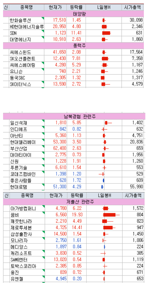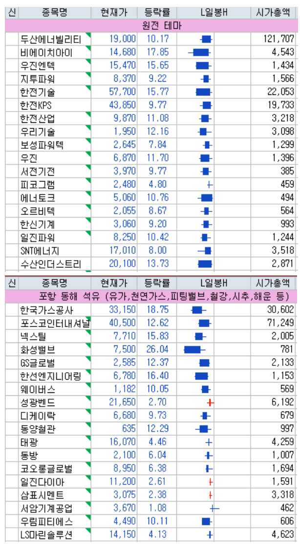 테마별 종목 등락률