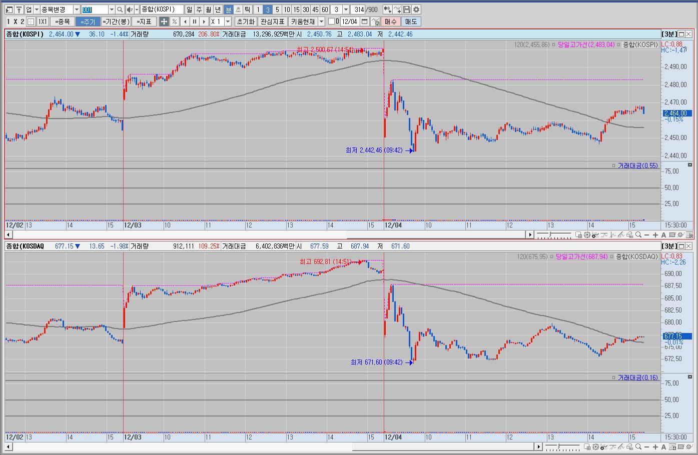 대부분 다시 하락했고 상승을 하다가도 급락이 나오기도 했다