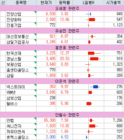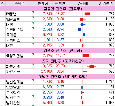 정치인 관련주 상황 (출처 : 고잉투더문 님 블로그)