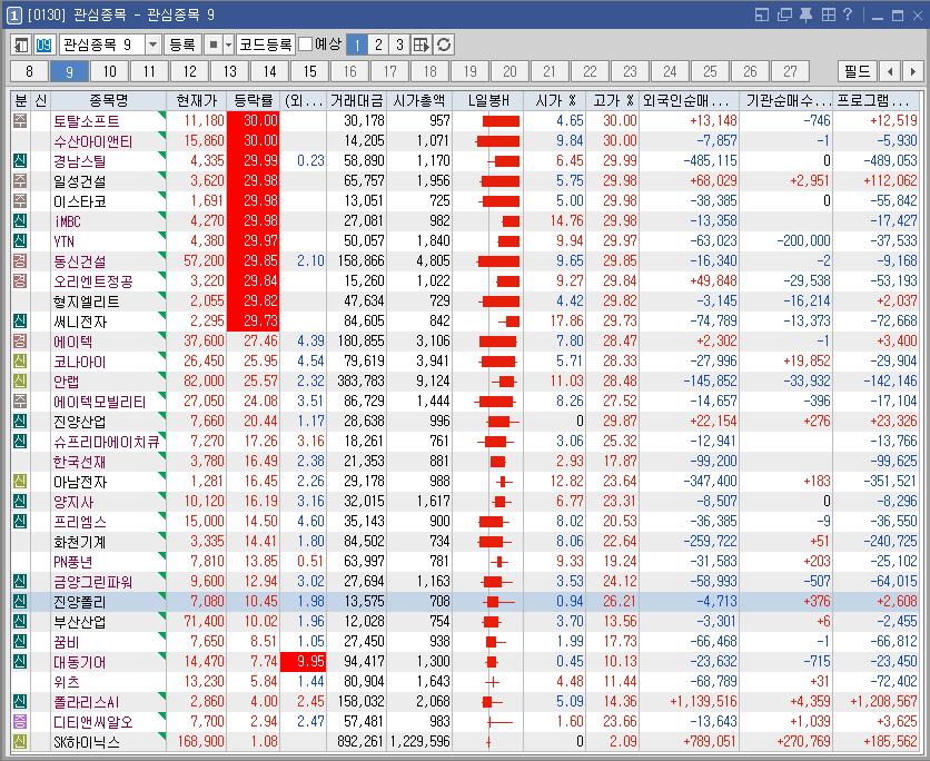 이스타코 29.98 13,026 민주당 "오는 14일 윤 대통령 탄핵소추안 표결" 소식 속 이재명 테마 상승