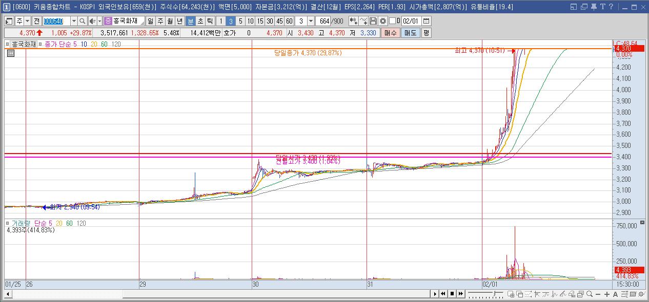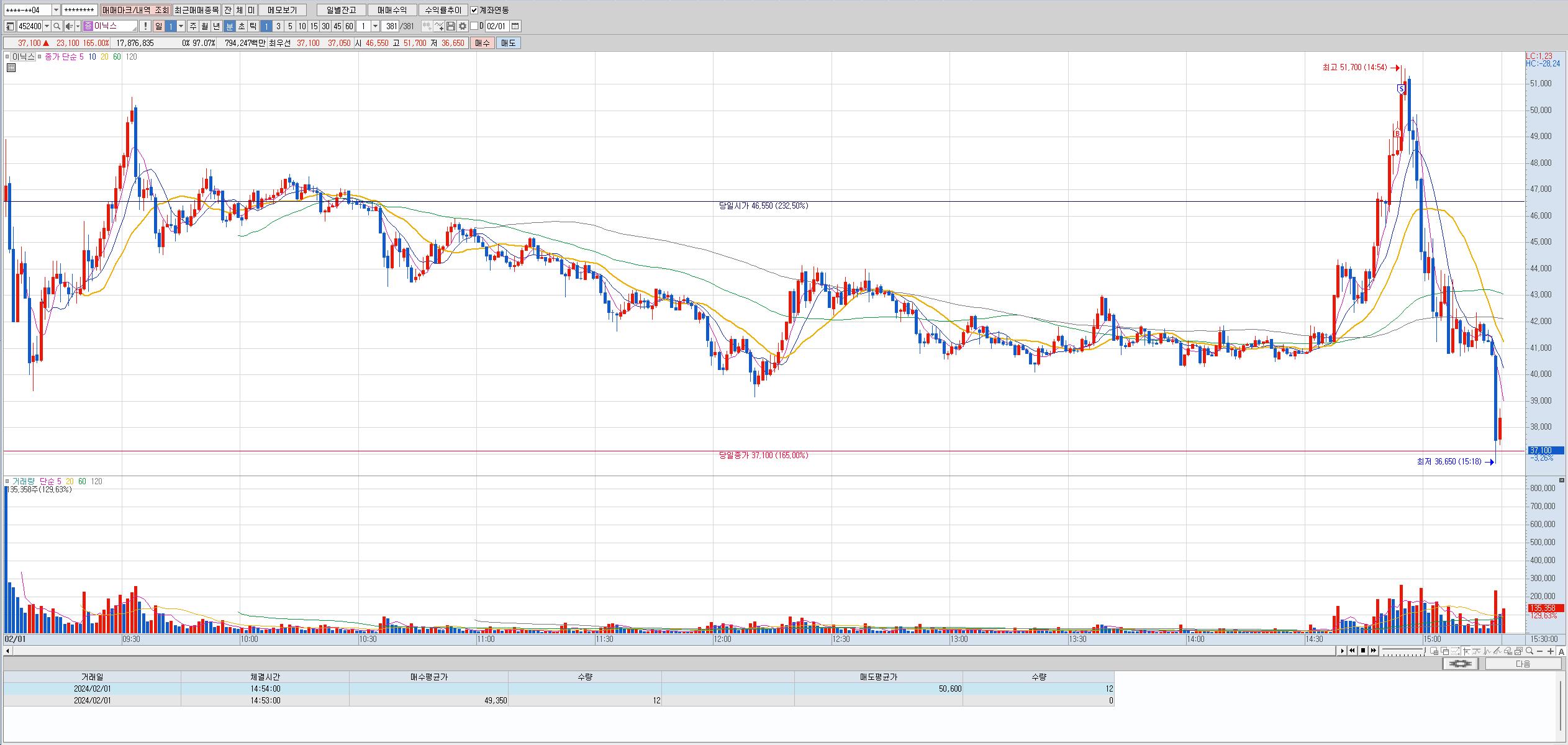 오늘 코스닥에 첫 상장한 종목이다. 신규종목은 등락폭이 너무 세서 손을 안 대고 있었는데 한번 구경 좀 해볼까 하고 보고 있는데 갑자기 미친듯한 매수세가 끊임없이 들어오길래 매수해 버렸다.(뇌동)