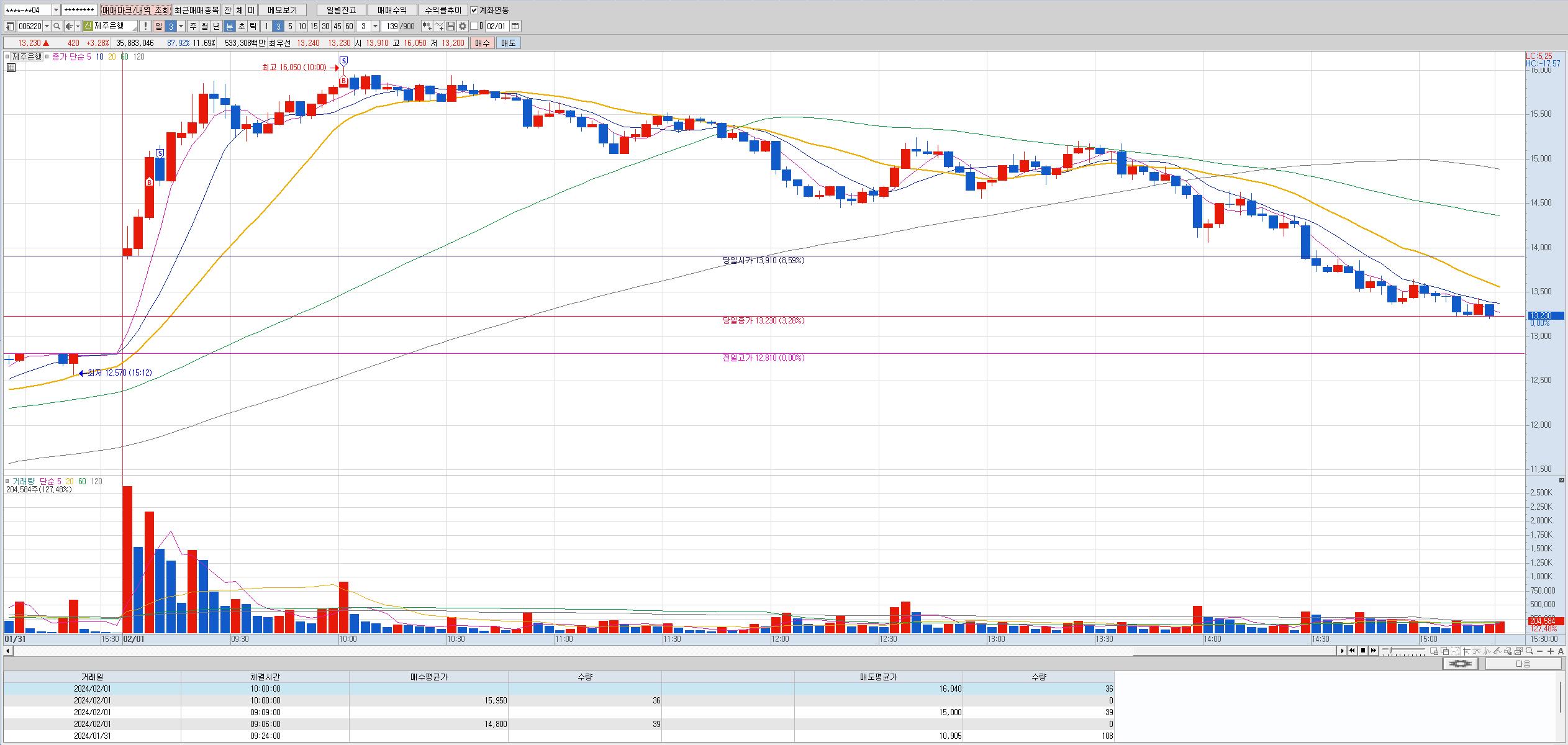 이후에 떨어지는 주가를 보면서 신규종목은 신속한 돌파 관점이 아니면 건드려서는 안 되겠다는 생각을 해본다.