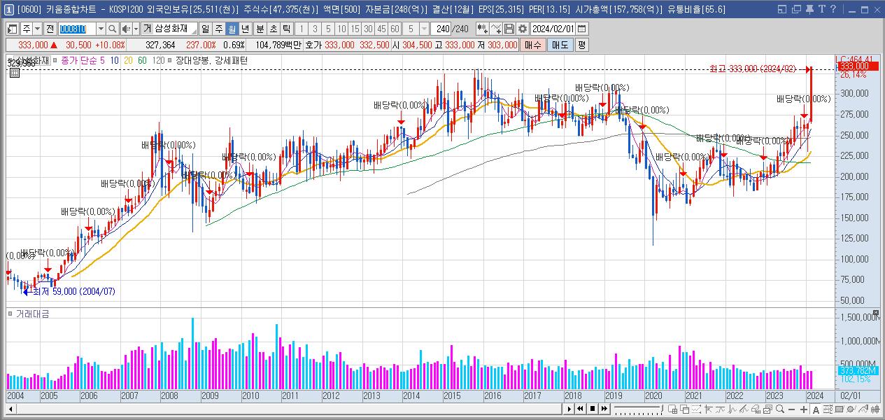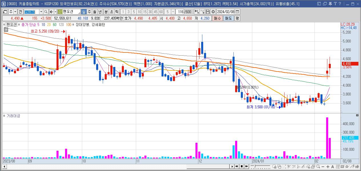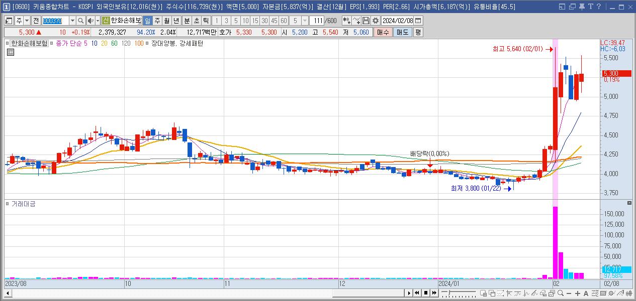 흥국화재 | 9.96 | 304 | 23년 개별기준 영업이익이 4,087.75억원으로 전년대비 119.79% 증가 |