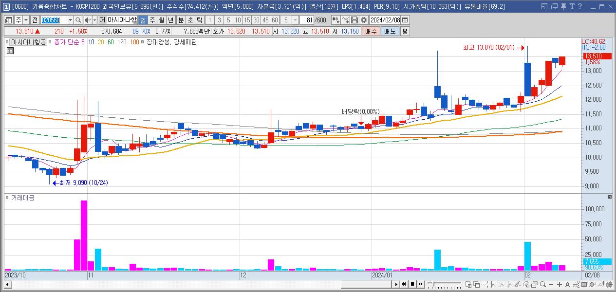 아시아나IDT | 2.24 | 6,658 | 대한항공-아시아나항공 EU 기업결합 승인 조기 발표 가능성에 상승세 |