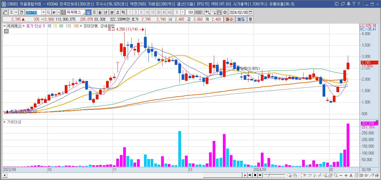 씨씨에스 | 5.65 | 6,028 | 3월 4일 김현탁 교수 LK-99 美학술대회 발표 기대감 지속 투자경고종목지정 |