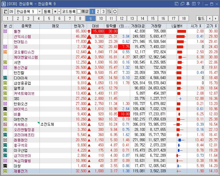 금강공업 | 2.50 | 39 | 우크라 재건 기대감 지속 |