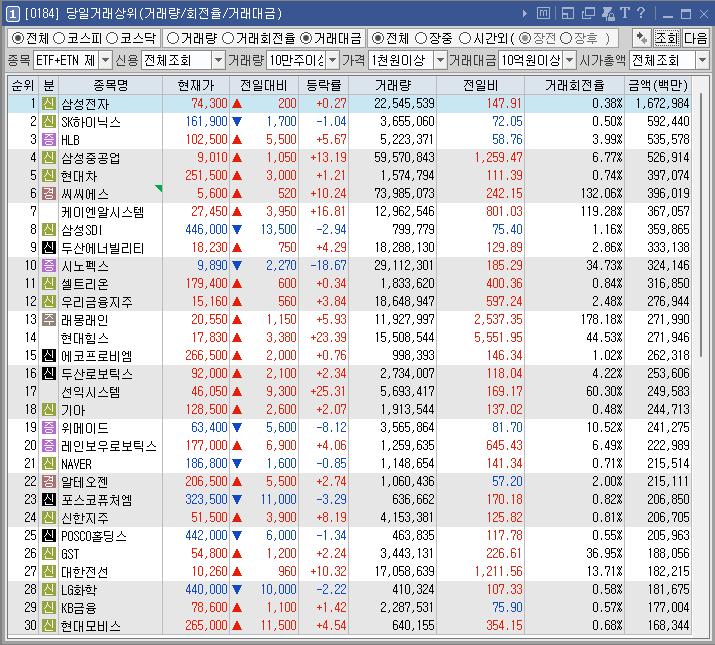 종목명 | 등락률 | 거래대금(백만) | 이유 |
