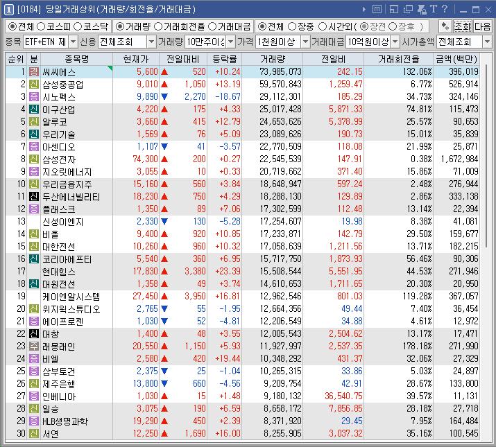 씨씨에스 | 10.24 | 392,731 | 권영완 이사 초전도체 관련 특허 출원 지속 부각 |