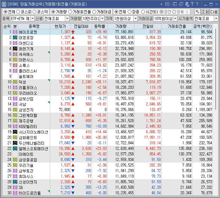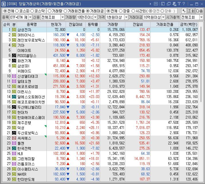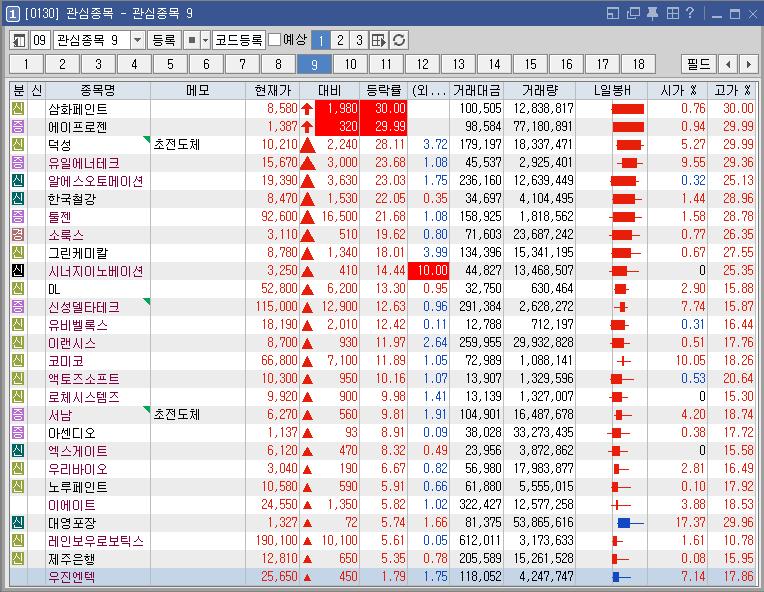 덕성 | 28.11 | 174,156 | '한동훈 동문' 대표이사 재선임 소식에 강세 신성델타테크, 작년 12월 퀀텀에너지연구소에 40억원 직접 투자 소식 속 초전도체 테마 상승 |