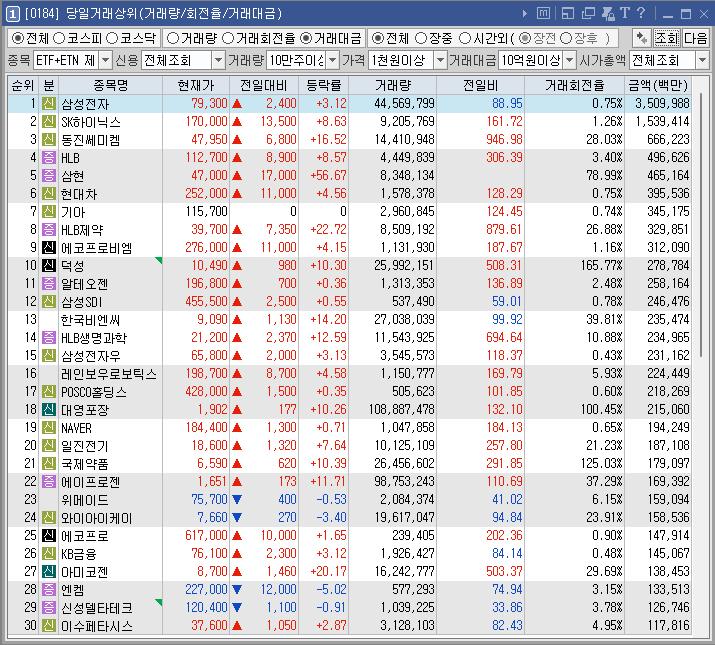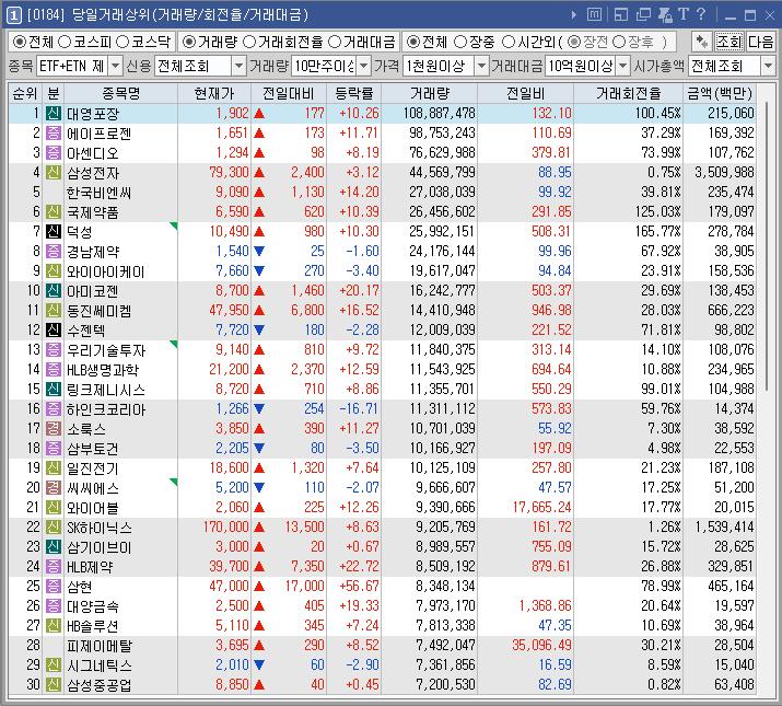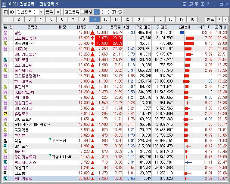 종목명 등락률 거래대금(백만) 이유