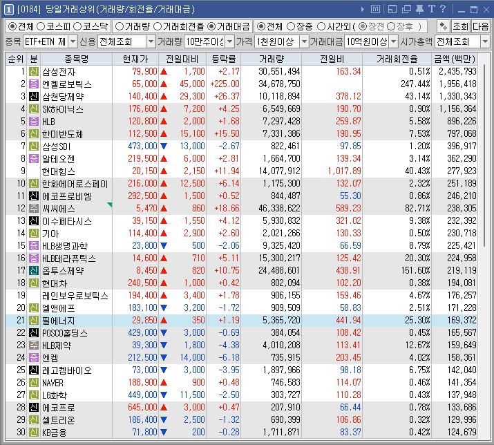 2. 오늘의 대장주를 제외하고 개별 종목이 모든 사람들이 관심을 가질때쯤엔 대부분 고점이다