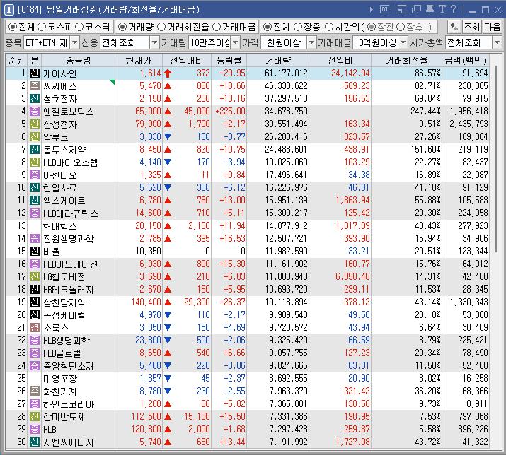 씨씨에스 -1.10 2,516 투자주의]단일계좌 거래량 상위종목