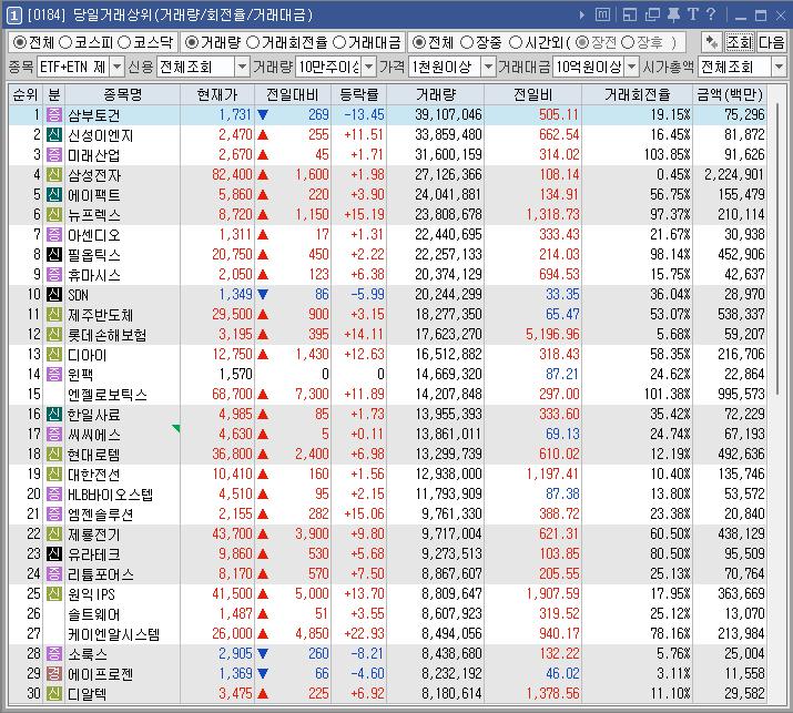SNT에너지 | 22.44 | 60,319 | 주당 2주 배정 무상증자 결정 |