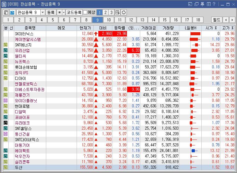 개별주 | SK이터닉스 SNT에너지 우리산업 롯데손해보험 원익IPS 이베스트투자증권 제룡전기 |