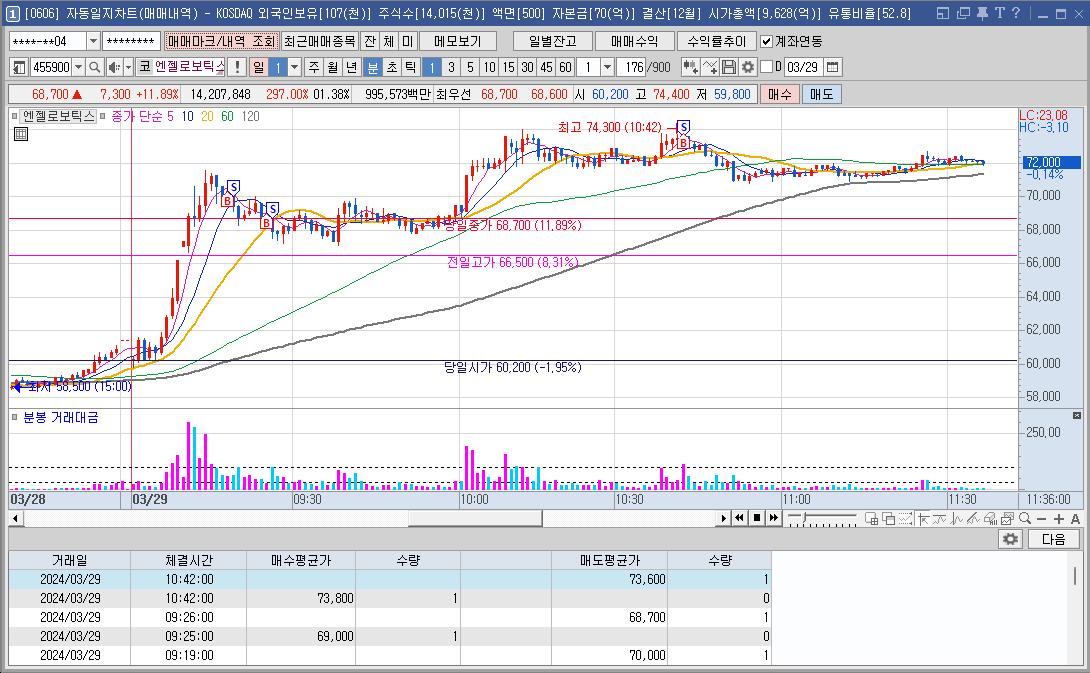 전날 종가에 매수하고 장 시작후 오를때 매도했다