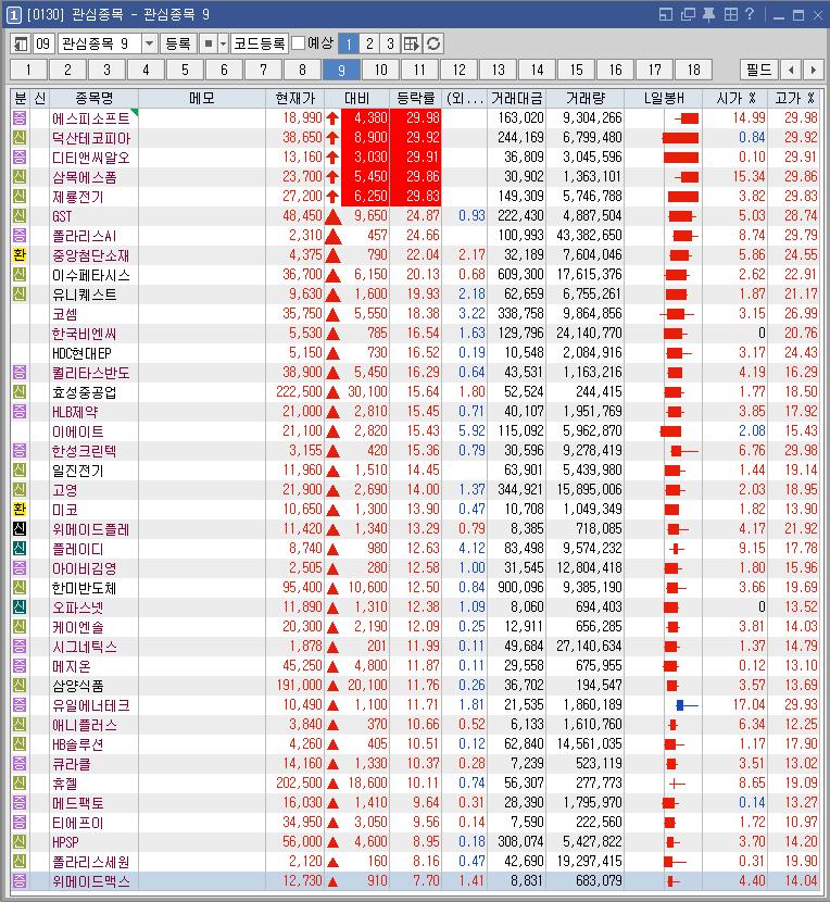에이직랜드 -0.97 1,387 투자주의]15일간 상승종목의 당일 소수계좌 매수관여 과다종목