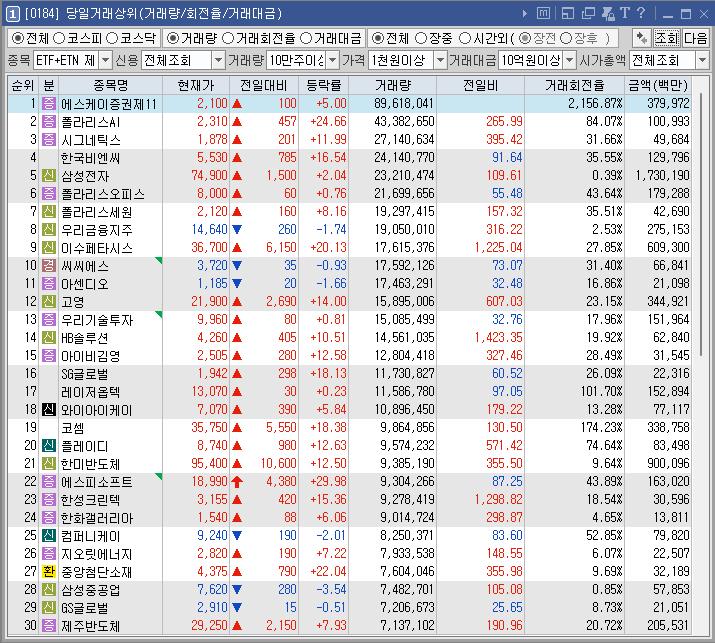 신성델타테크 -2.27 7,137 "새 물질 오늘밤 공개"LK-99 초전도체 논란 소식 속 초전도체 테마 하락