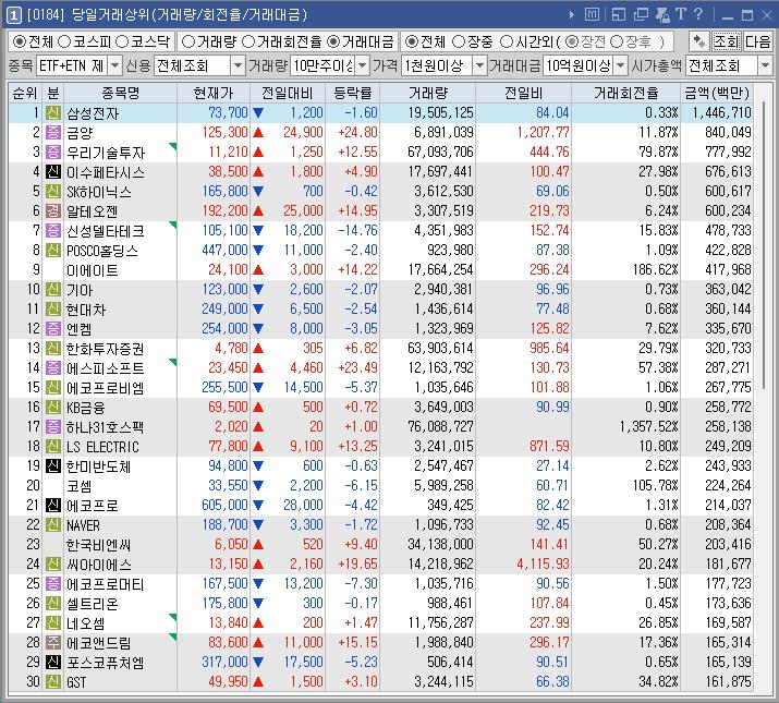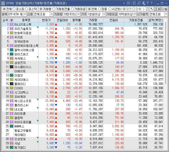 투자주의]단일계좌 거래량 상위종목