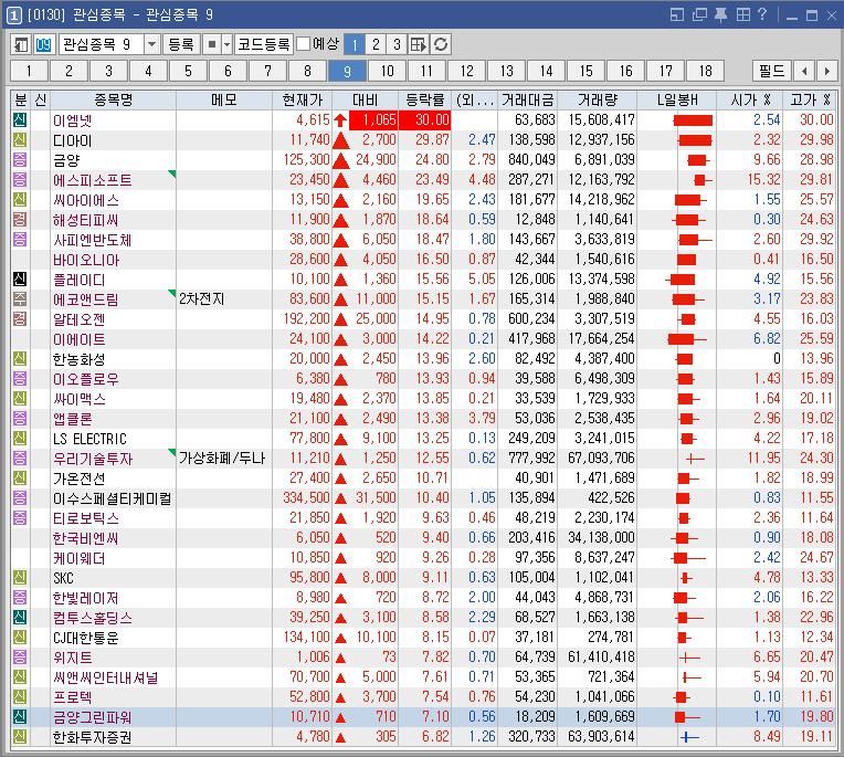 디아이 29.87 135,962 HBM 장비 납품 가능성 높다는 증권사 분석에 강세