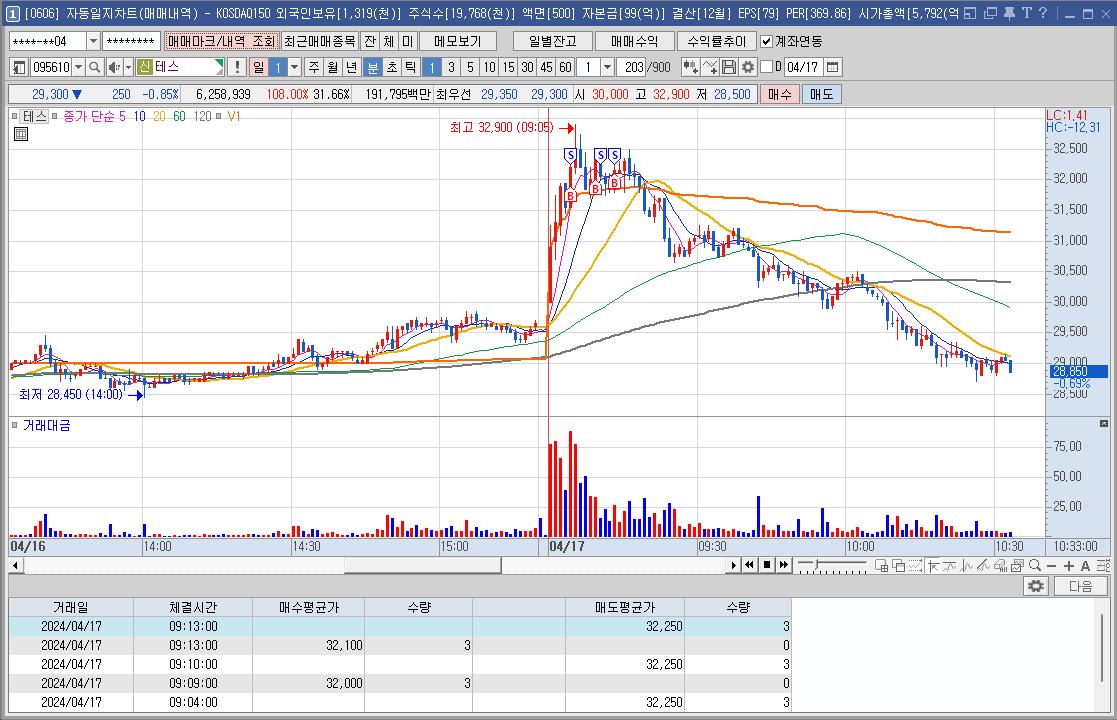 최고점에서 매수했다가 사자마자 급락을 맞고 스탑로스가 발동되면서 -3.3% 손실