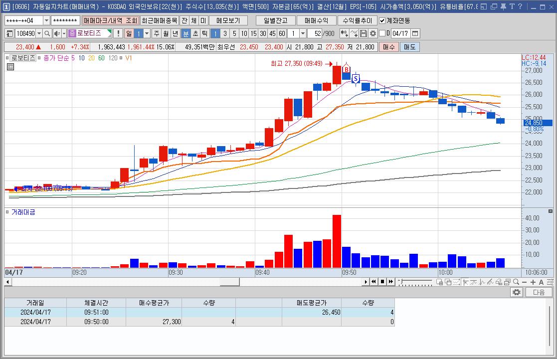 손실을 보고 멘탈이 흔들리는 가운데 급격히 상승하는 로봇주들을 보고 뇌동매매