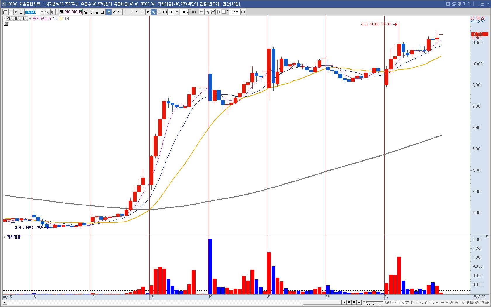와이아이케이 30분봉 흐름