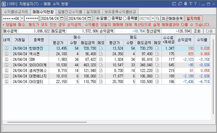 2024년 4월 24일(수) 특징주 및 시간외 / 매매일지