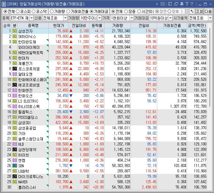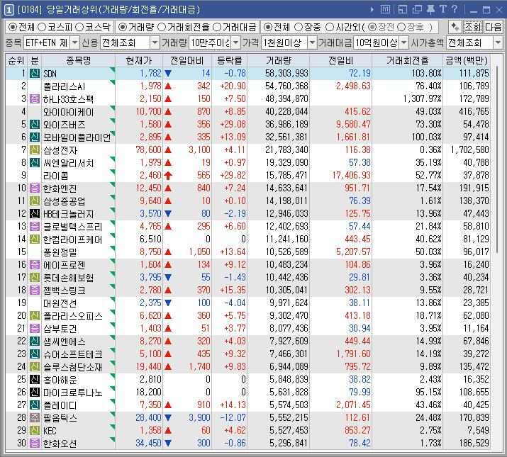 종목명 등락률 거래대금(백만) 이유