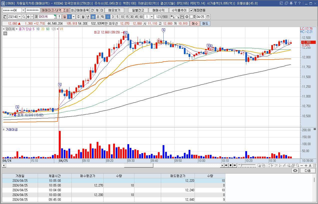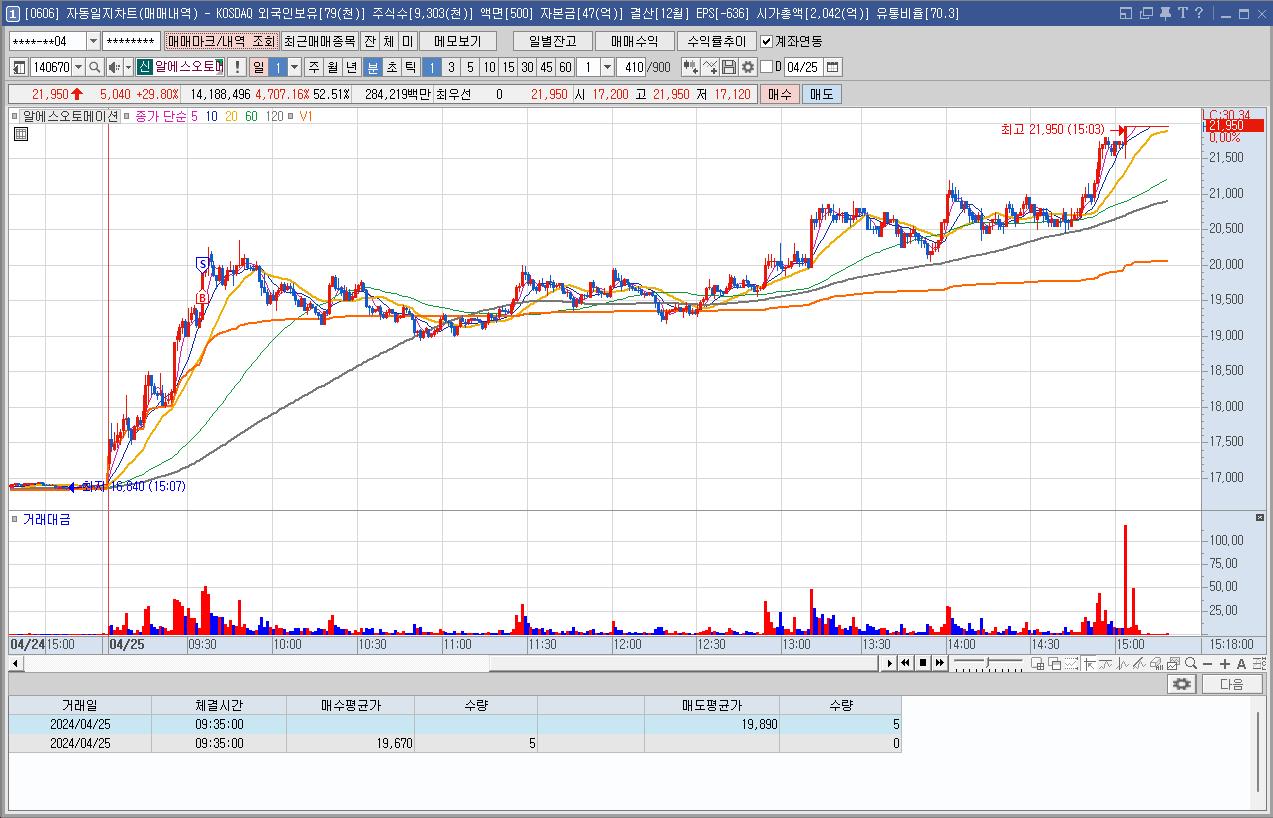 하루종일 강세에 외국인도 계속 매수를 했고 해서 종가에 살까 말까 고민을 많이 하다가 장후종가에 매수했다