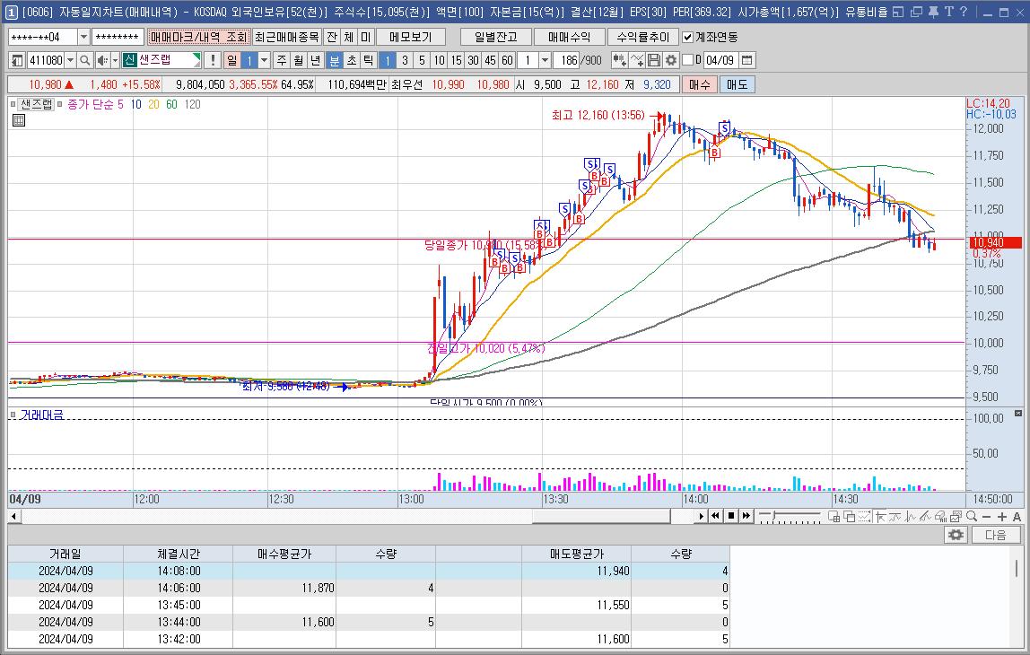 좀 더 기다렸다가 눌림에 샀어야 했는데 바로 도망갈것만 같아서 매수했다가 등락에 마음이 불편했다