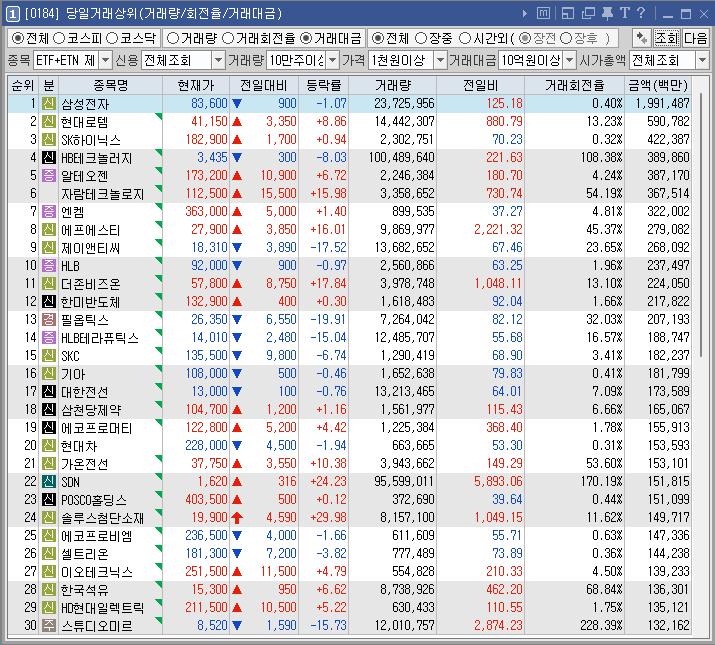 종목명 등락률 거래대금(백만) 이유