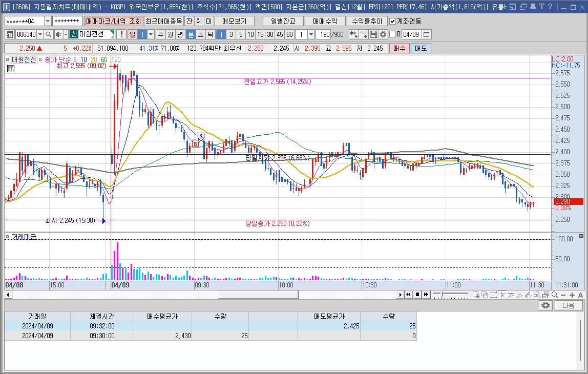 대원전선 -3.11 1,587 단기과열종목(3거래일 단일가매매) 지정