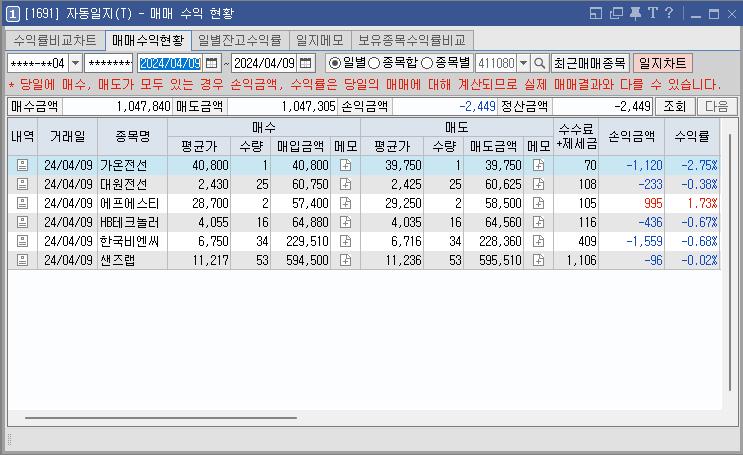 2024년 4월 9일(화) 특징주 및 시간외 / 매매일지