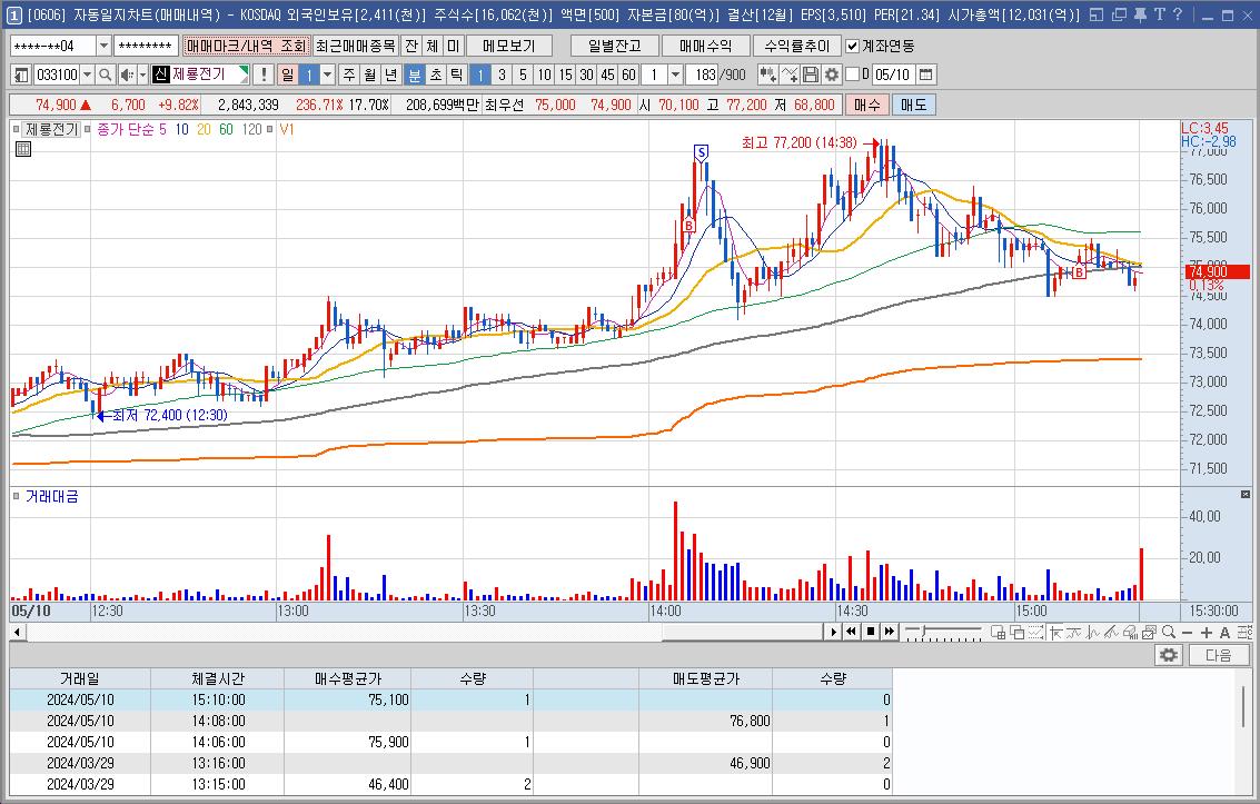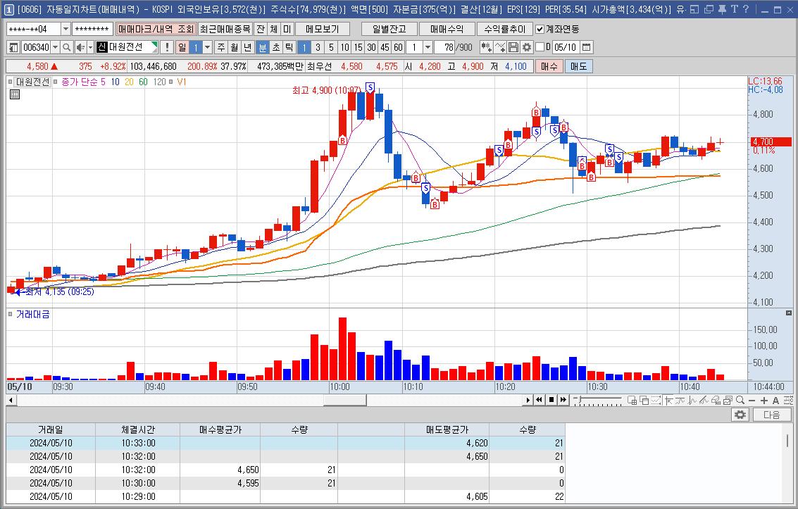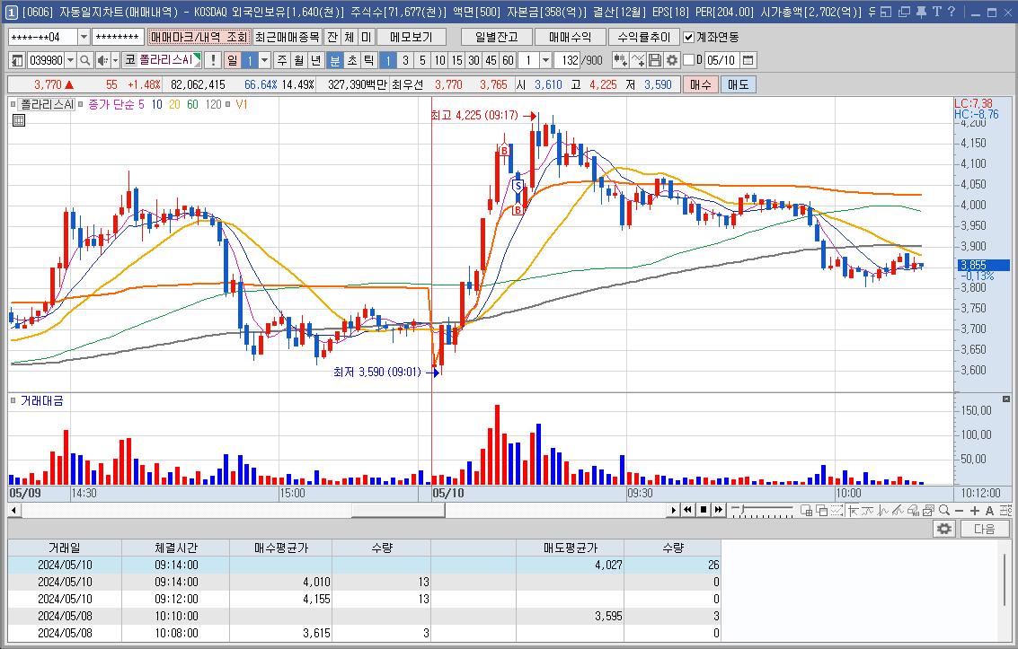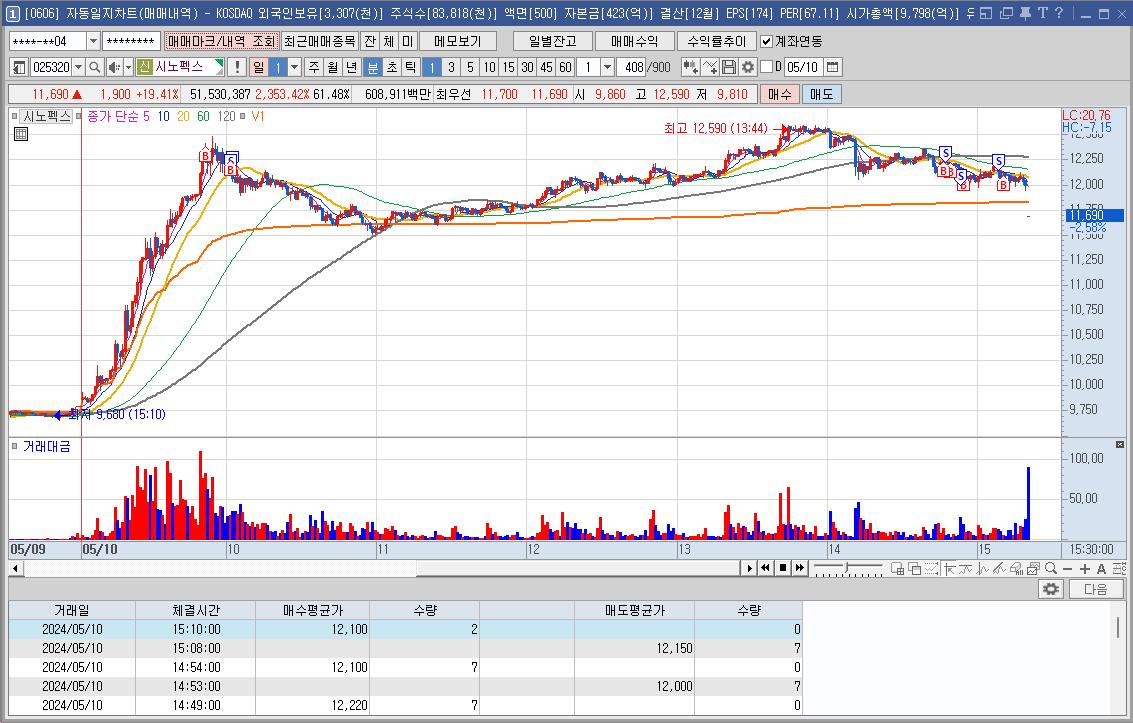 이미 발견했으나 다른 종목 매매하느라 좋은 구간을 놓쳤다. 뒤늦게 추격 매수를 했고 여러번 매매를 했다