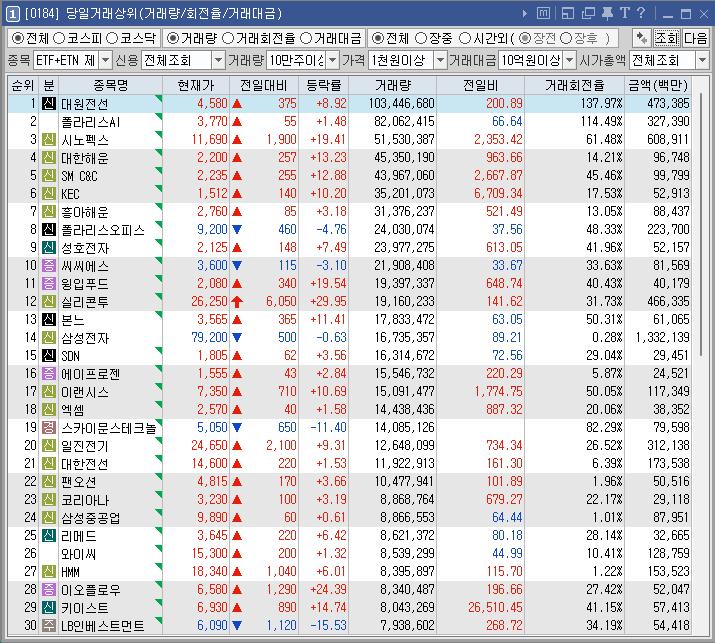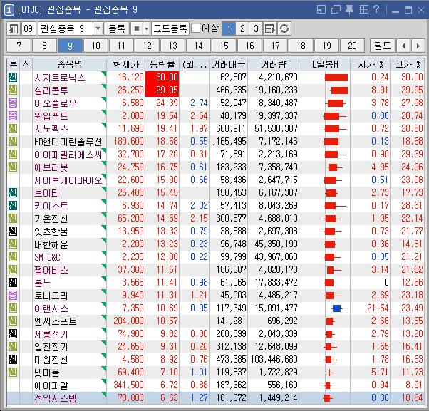 에스유홀딩스 | 30.00 | 4,345 | 무상감자 후 거래재개 첫날 강세 |