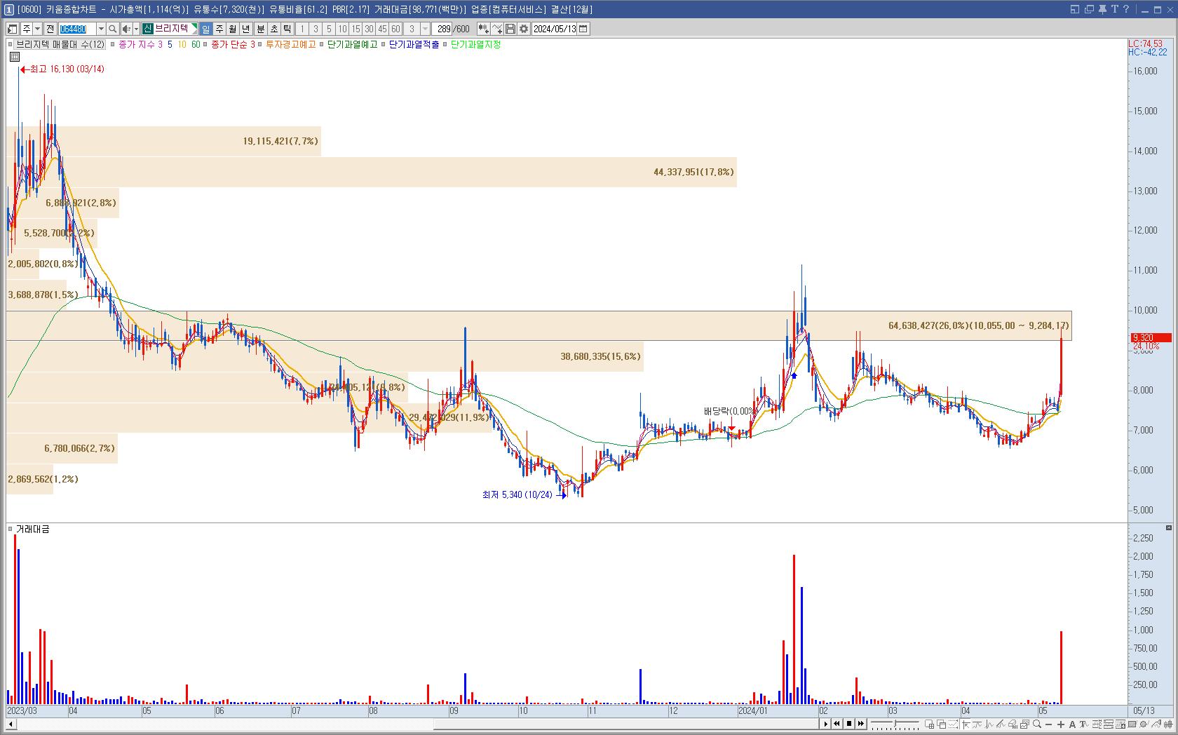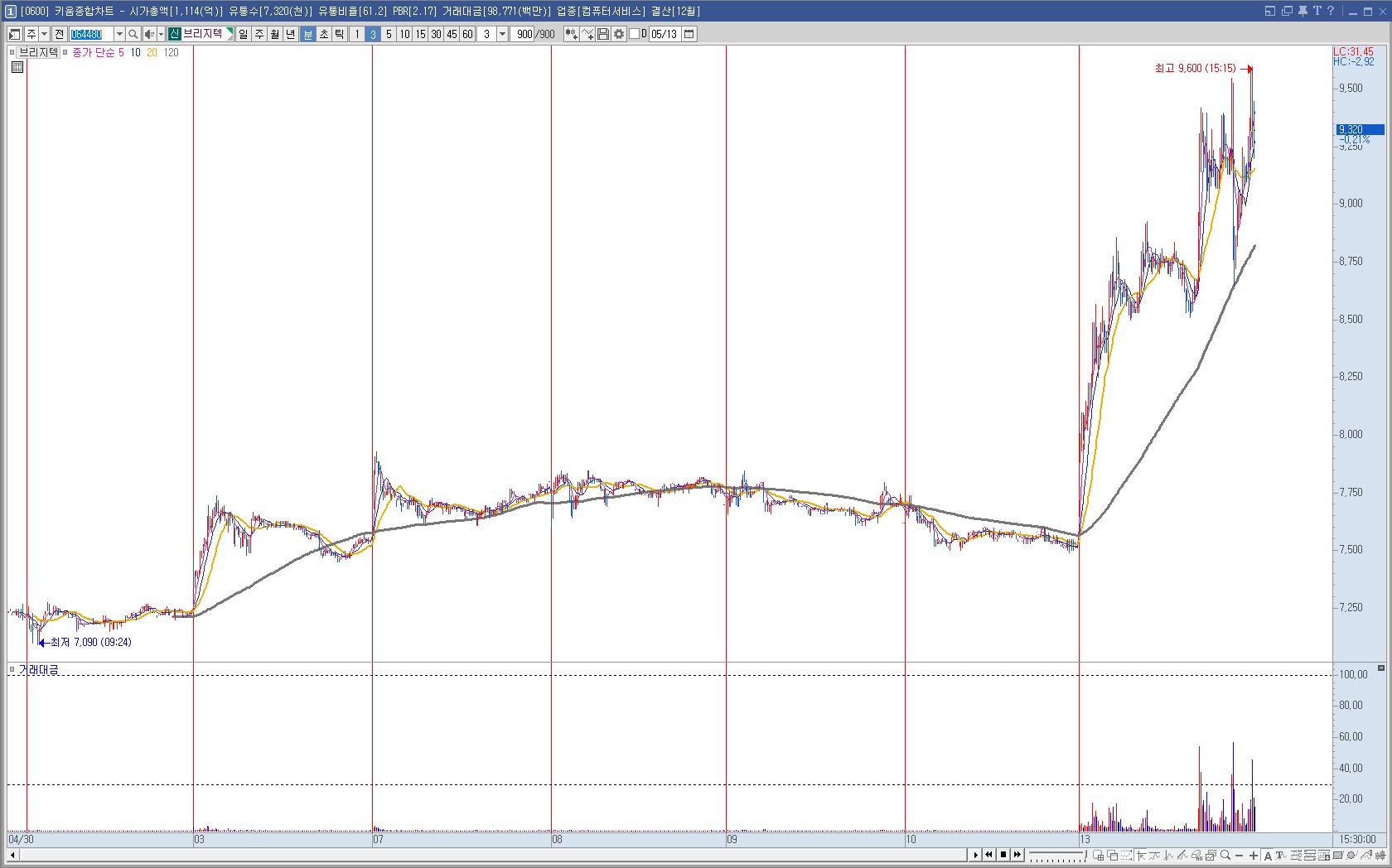 브리지텍은 애플 음성지원 관련해서 오른 듯 한데 장 중 움직임이 변동폭이 컸다