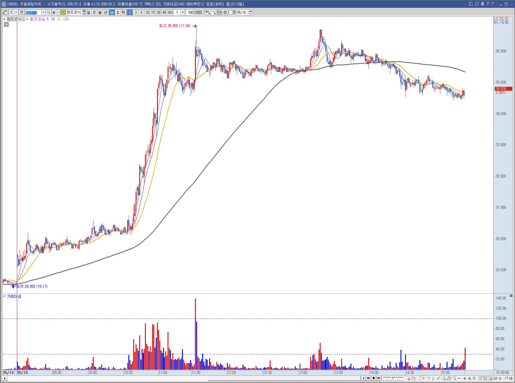AI도 강세고 전일 상한가 종목이라 지켜보다가 오르는 모습에 진입