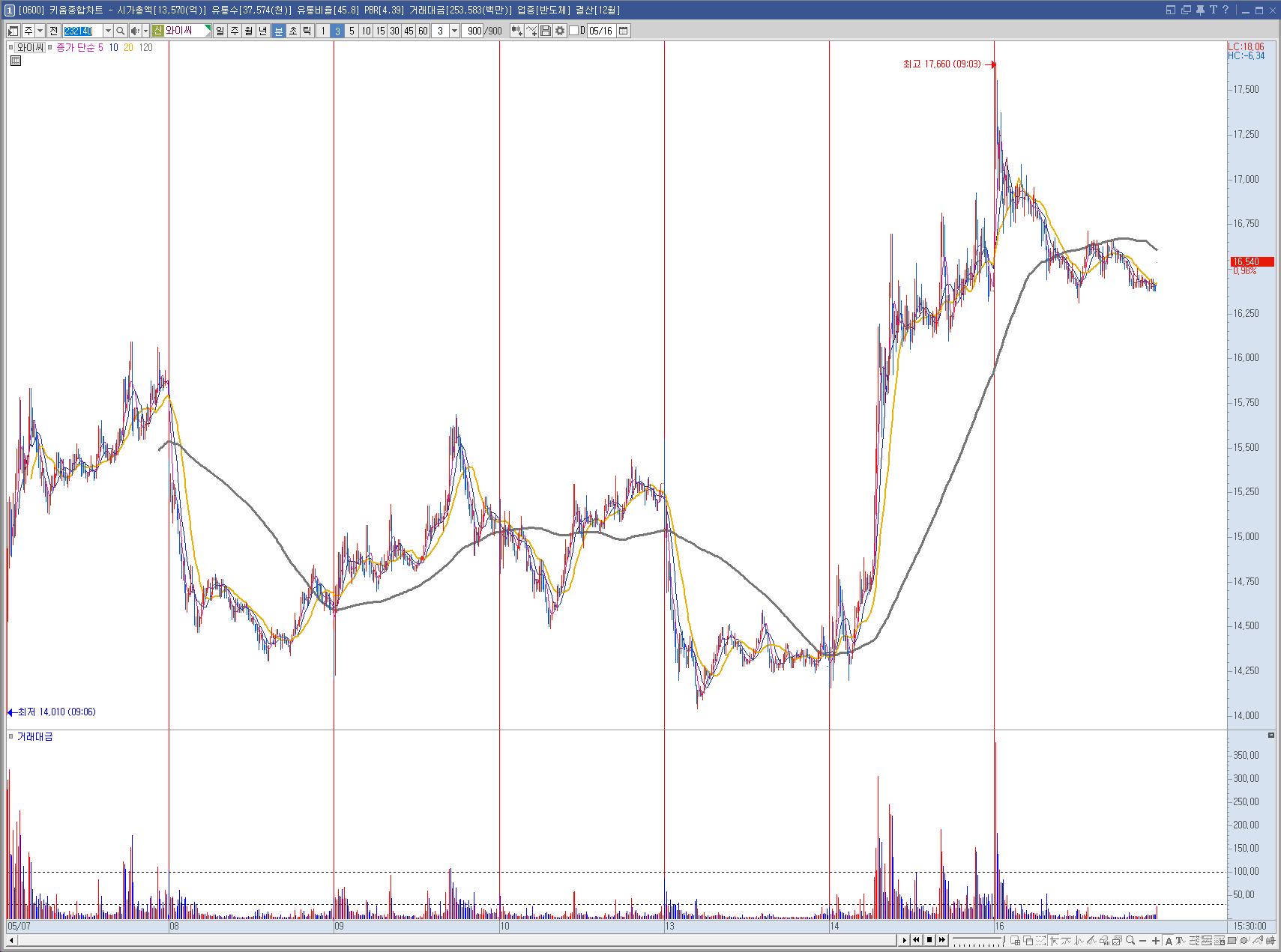 강한 반도체 종목인 와이씨를 지켜보고 매매했다