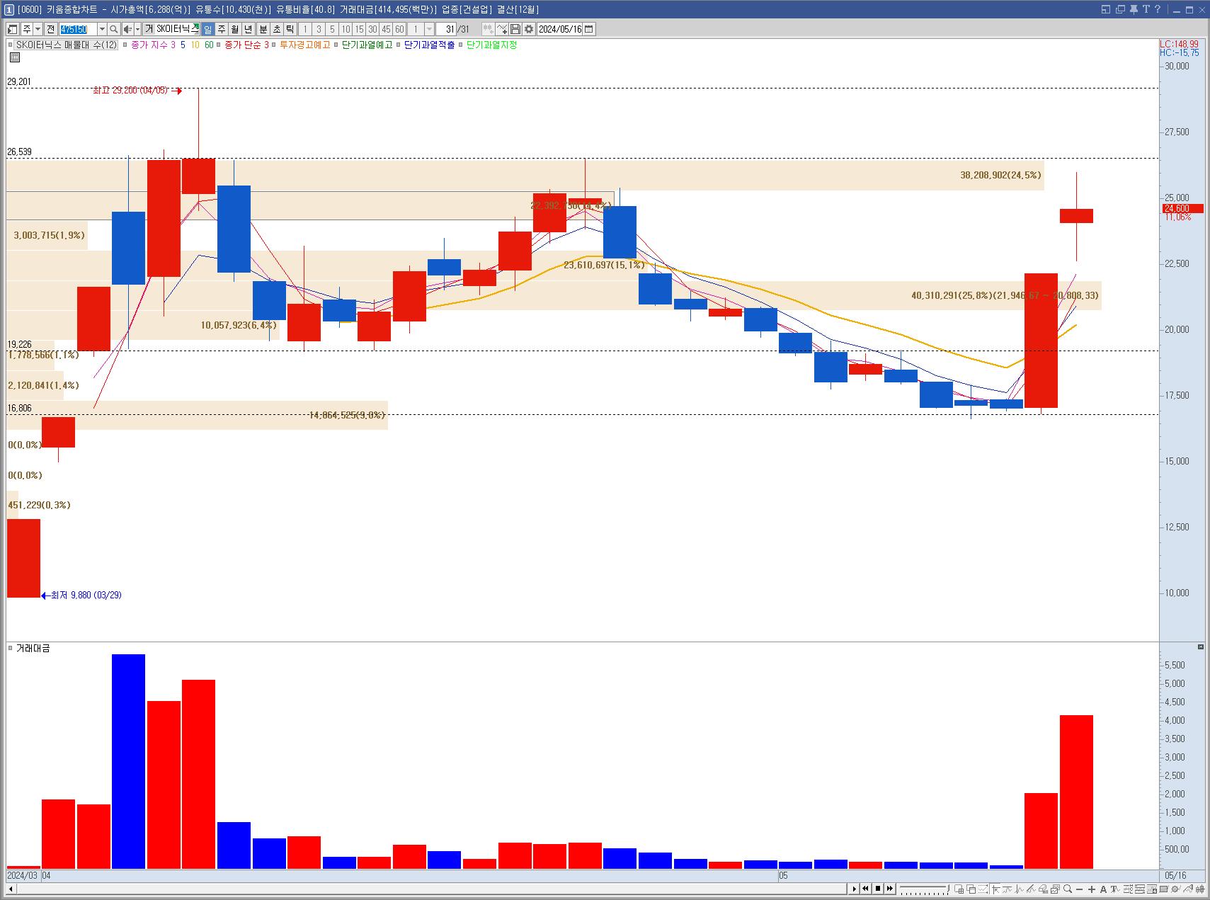 오늘 거래대금 많이 터지고 강했던 종목. 큰 변수가 없다면 각종 지표가 내일 시장이 괜찮을 것이라고 판단