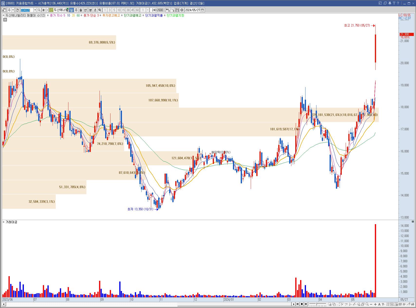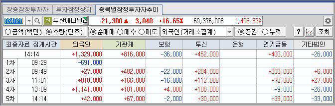 두산에너빌리티 | 16.65 | 1,405,584 | 美 뉴스케일 50조 SMR 프로젝트에 대규모 납품 소식 정부의 체코 원전 프로젝트 계획 기대감 속 원전 테마 강세 |