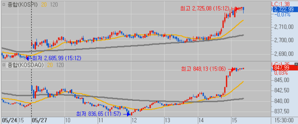 갭이 많이 뜨고 시장이 좋아보일땐 수급이 제일 좋은 종목을 지켜보다가 매매하는게 나을 것 같다