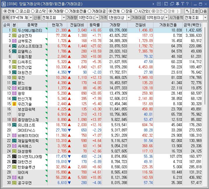 여러개의 테마와 종목이 올라가서 그런지 각각의 종목은 힘이 좋아도 상승률은 약하게 느껴졌다