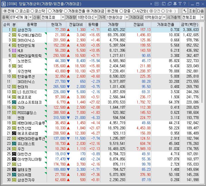 코아시아 | 12.90 | 6,277 | 엔비디아 최고가 경신 소식 속 반도체 테마 강세 |