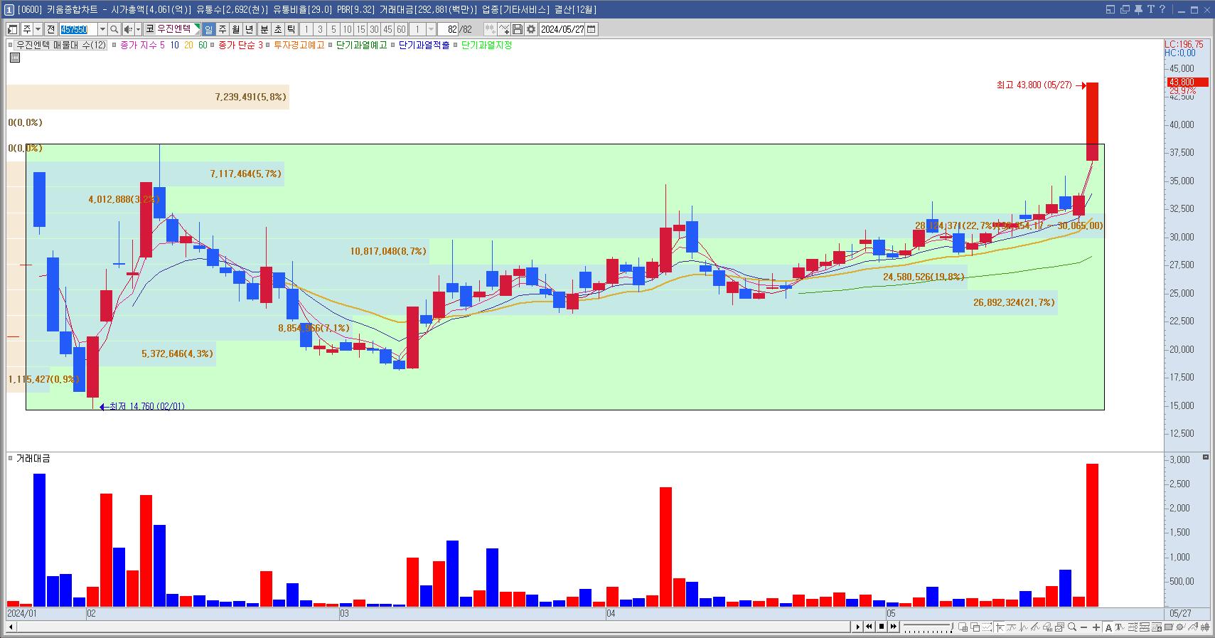 우양 | -1.59 | 2,727 | 단기과열종목(3거래일 단일가매매) 지정예고 투자주의]스팸관여과다종목 |